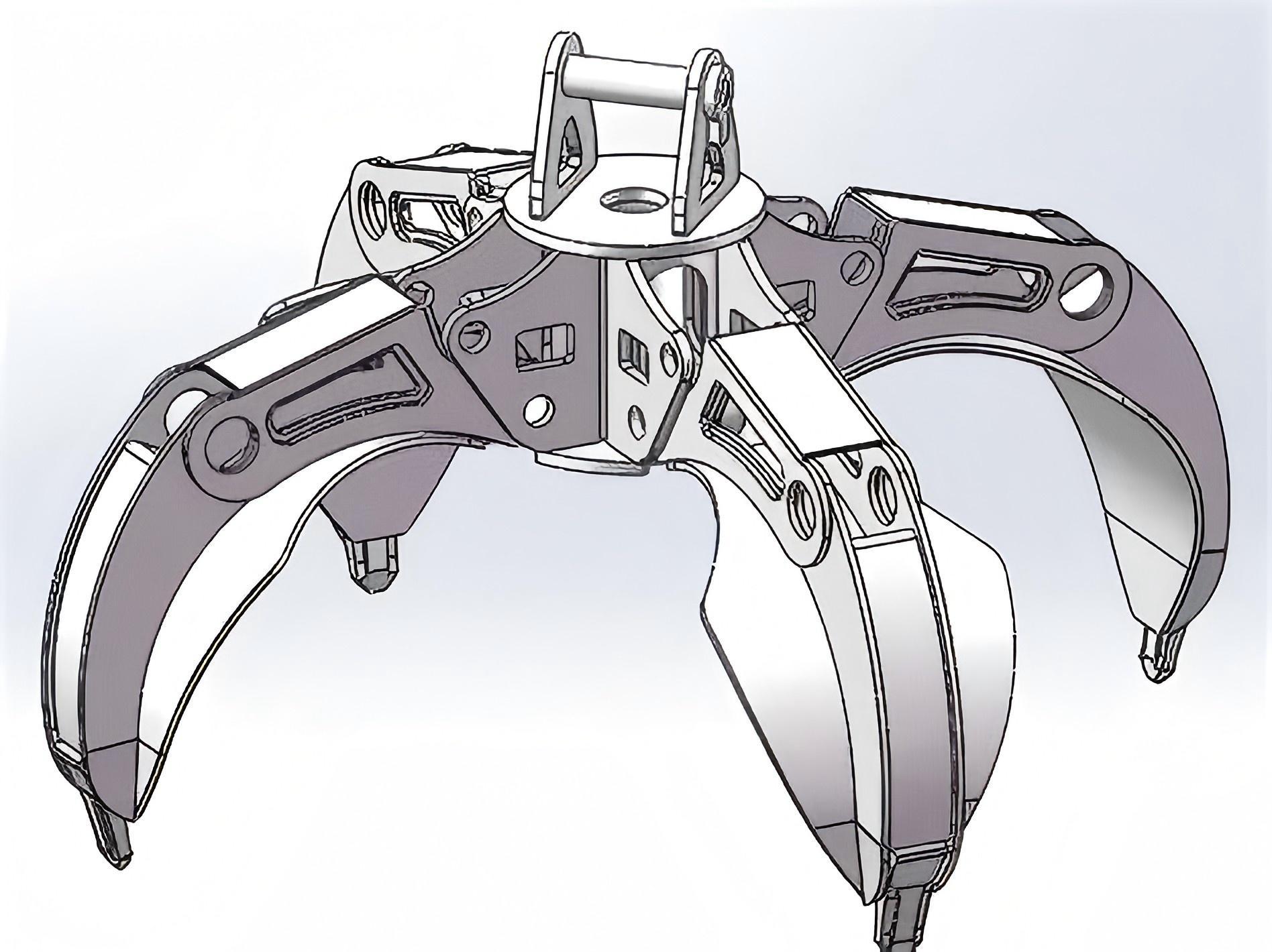 أصبح التصميم الهيكلي أيضًا أكثر ذكاءً. يتم تصنيع الجزء العلوي من لوحة الاستيلاء على بتلة الخمسة بزاوية 72 درجة ، ويتم إضافة الأضلاع والكتل المعززة لضمان المزيد من توزيع القوة عند الاستيلاء على الصلب الخردة. في السابق ، استخدم حفارة 15 طن دلوًا للاستيلاء على الحديد وتفريغ الحديد ، وغالبًا ما يخشى "وميض الخصر". الآن ، يمكن أن يمسك بثقة ما يصل إلى 2.3 طن - هذا هو الحد الأقصى تقريبًا.